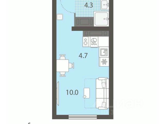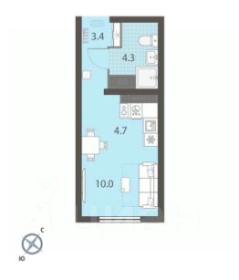 Жилая площадь 10.3 м2, кухня 5 м2, чистовая отделка. Раздельных санузлов - нет, балконов - нет, лоджий - нет.