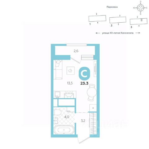 Эргономичная квартира-студия с лоджией и перспективой роста в цене — отличный выбор для тех, кто делает первые шаги к самостоятельной жизни. Общая площадь квартиры 23,3 кв.м., и ее умная планировка позволяет создать атмосферу, полностью отражающую ваши стиль и предпочтения. Квартира располагается в ЖК "Комсомольский" — жилом комплексе комфорт-класса. Здесь вы будете наслаждаться беззаботной жизнью, ведь ваш дом — воплощение практичности, безопасности и надежности. Для удобства предусмотрены колясочные на первых этажах домов, где можно оставить велосипеды и коляски в тепле. За безопасность отвечают система электронных ключей и видеонаблюдение. Еще здесь собственная котельная, поэтому в доме всегда будут горячая вода и оплата счетов только за фактически потребленное тепло. ПРЕИМУЩЕСТВА ЖК На этаже 12 квартир Красивые и функциональные парадные с мягкой и стильной зоной для отдыха, книгообменником, встроенными почтовыми ящиками и нишами для сумок Колясочные с доступом по ключу IP-домофоны Тихие лифты с плавным ходом О ПРОЕКТЕ ЖК "Комсомольский" строится в спокойном Кировском районе Екатеринбурга в границах улиц Сыромолотова — Рассветная — 40-лет Комсомола. Комплекс состоит из трех домов переменной этажности, которые выделяются динамичными линиями, выразительными фасадами и стильными лоджиями. ЛОКАЦИЯ Всё, что необходимо для повседневной жизни, находится недалеко от дома: школы, детские сады, продуктовые магазины, фитнес-клубы. Дорога до центра города на машине займет всего 10 минут — достаточно повернуть с улицы 40-летия Комсомола на улицу Владимира Высоцкого. Рядом с этим перекрестком начинается "Тропа здоровья" — большой терренкур вдоль "Каменных палаток". 10 мин до центра 3-4 минуты до школы No 82, гимназии No 176 4-5 минут до детских садов No 208, No 583, 266 20 мин до Свердловского областного медицинского колледжа и Центральной городской больницы No 7 В рамках стратегического развития района на первых этажах домов появятся коммерческие помещения, в которых откроются магазины и кафе. Следует учесть, что к 2030 году в Кировском районе планируется формирование регионального рекреационно-оздоровительного кластера, строительство ветки метро, расширение и модернизация старых промышленных зон социальной и бизнес-инфраструктуры, что приведет к созданию комфортной среды для жизни. Кроме того, в стратегию входит развитие Шарташского лесного парка как центра регионального и международного туризма. СПОСОБЫ ПОКУПКИ Ипотека: подберем выгодные условия в нескольких банках, чтобы вы могли выбрать лучшее Материнской капитал: можно использовать в качестве первоначального взноса Рассрочка: платите частями без % Сертификаты: позволяют оплатить часть стоимости квартиры О КОМПАНИИ "Паритет Девелопмент" — это современный и ответственный подход к реализации проектов в сфере жилищного строительства. Компания формирует среду, способную создать новое качество жизни для клиентов, поэтому каждый проект имеет свою философию — не просто квадр