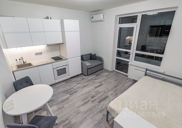 Просторная квартира студия, общей площадью 33.2 м2., распложена на высоком 19 этаже, где открывается шикарный вид на город! Окна квартиры выходят на разные стороны УГМК Арену и Свято-Троицкий Кафедральный Собор, панорамное остекление.