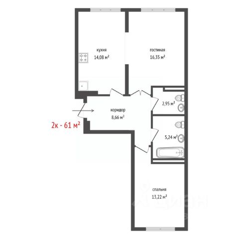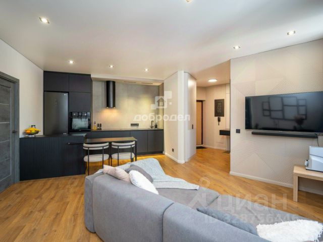 Можно легко зонировать, т.к. в квартире 3 окна, функциональная и просторная зона кухни, большая квадратная прихожая позволит комфортно разместить шкаф.