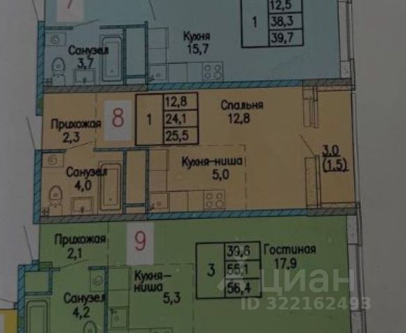 Площадь квартиры = 26,7 кв.м. (в том числе лоджия 2,20 кв.м.),