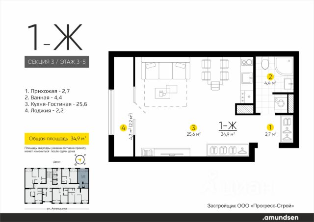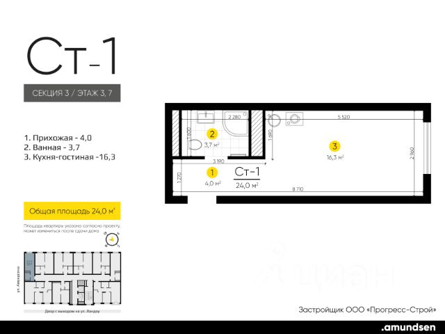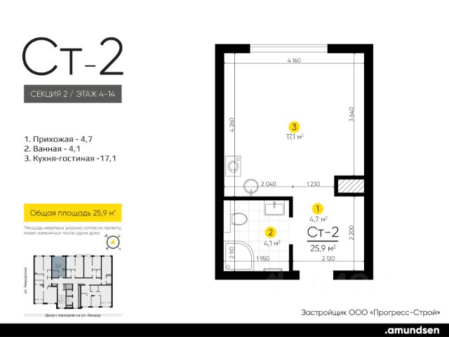 Жилой квартал "Amundsen" - для себя, для семьи, для жизни и развития. Авторская концепция проекта эффектно выделяется в 3 особенностях комплекса: фасады, двор и места общего пользования. AMUNDSEN ПРОЕКТ С ХАРАКТЕРОМ ВЕЛИКОГО ПЕРВООТКРЫВАТЕЛЯ. 4 СЕЗОНА: Двор-трансформер позволяет активно использовать все площадки круглый год. В холодное время года санки, коньки и снежные бои за главную башню. В теплое время источник наполняет двор водой и прохладой. Работают площадки для активных игр и спокойного отдыха. 6 ДЕТСКИХ ПЛОЩАДОК: Мы разделили площадки по возрастным группам для малышей и детей постарше. Качели, аттракционы, водные и активные игры созданы, чтобы познавать мир. 5 ПЛОЩАДОК ДЛЯ СПОКОЙНОГО ОТДЫХА: За счет игры с ландшафтом мы создали приватные зоны, украсили пространство разнотравьем, оживили двор источником. Шум воды, лежаки, беседки, парк места, где ты почувствуешь течение жизни. AMUNDSEN ИДЕАЛЬНОЕ МЕСТО ДЛЯ ЖИЗНИ И РАЗВИТИЯ. - Жилой квартал расположен в экологически чистом районе в окружении двух лесных массивов. - Новые современные школы и детские сады. Спортивный кластер для занятий. - Главный холл пространство для всех. Для самых маленьких игры, для взрослых кафе с ярким дизайном, тихий коворкинг, места для отдыха и светлый, просторный атриум. - Детские площадки "будущего" с оригинальным подходом к созданию игровой среды. - Безопасная территория. Круглосуточная охрана, видеонаблюдение 24/7, электронная система доступа, двор без машин. Застройщик ООО СЗ "Прогресс-Строй", проектная декларация на сайте наш.дом.рф