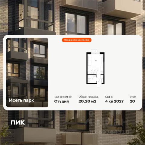 Продаётся квартира-студия площадью 20,2 кв.м на 20 этаже 24 этажного дома (Корпус 5, Секция 1) проекта ПИК Исеть парк. Светлый просторный подъезд на уровне земли, функциональная планировка, большие окна, предчистовая отделка. "Исеть парк" возводится в Октябрьском районе Екатеринбурга — на берегу реки Исеть в окружении трёх крупных лесопарков. До метро "Ботаническая" можно дойти за 15 минут, а дорога на автомобиле до центра города занимает 20 минут. Проект включает шесть домов и многоуровневый паркинг. На первых этажах открываются кафе, магазины и полезные сервисы. А в уютных дворах-парках есть детские и спортивные площадки. Район хорошо развит: есть школы и детские сады, магазины и поликлиники. Ещё здесь находится большой развлекательный комплекс с аквапарком "Лимпопо" и крупнейший на Урале океанариум, городской зоопарк и Академический театр оперы и балета. Артикул 881259 (Застройщик ООО "СЗ "Столица")