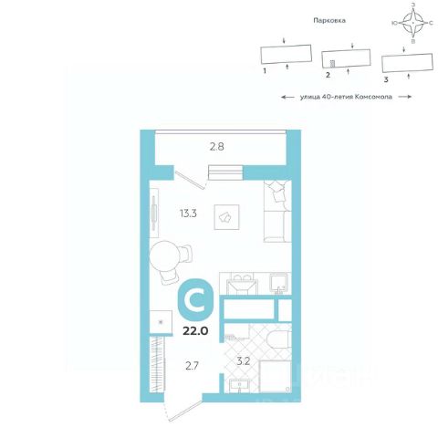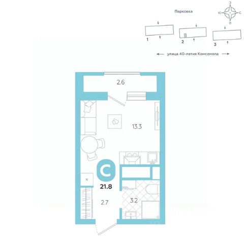 Эргономичная квартира-студия с лоджией и перспективой роста в цене — отличный выбор для тех, кто делает первые шаги к самостоятельной жизни. Общая площадь квартиры 21,9 кв.м., и ее умная планировка позволяет создать атмосферу, полностью отражающую ваши стиль и предпочтения. Квартира располагается в ЖК "Комсомольский" — жилом комплексе комфорт-класса. Здесь вы будете наслаждаться беззаботной жизнью, ведь ваш дом — воплощение практичности, безопасности и надежности. Для удобства предусмотрены колясочные на первых этажах домов, где можно оставить велосипеды и коляски в тепле. За безопасность отвечают система электронных ключей и видеонаблюдение. Еще здесь собственная котельная, поэтому в доме всегда будут горячая вода и оплата счетов только за фактически потребленное тепло. ПРЕИМУЩЕСТВА ЖК Красивые и функциональные парадные с мягкой и стильной зоной для отдыха, книгообменником, встроенными почтовыми ящиками и нишами для сумок Колясочные с доступом по ключу IP-домофоны Тихие лифты с плавным ходом О ПРОЕКТЕ ЖК "Комсомольский" строится в спокойном Кировском районе Екатеринбурга в границах улиц Сыромолотова — Рассветная — 40-лет Комсомола. Комплекс состоит из трех домов переменной этажности, которые выделяются динамичными линиями, выразительными фасадами и стильными лоджиями. ЛОКАЦИЯ Всё, что необходимо для повседневной жизни, находится недалеко от дома: школы, детские сады, продуктовые магазины, фитнес-клубы. Дорога до центра города на машине займет всего 10 минут — достаточно повернуть с улицы 40-летия Комсомола на улицу Владимира Высоцкого. Рядом с этим перекрестком начинается "Тропа здоровья" — большой терренкур вдоль "Каменных палаток". 10 мин до центра 3-4 минуты до школы No 82, гимназии No 176 4-5 минут до детских садов No 208, No 583, 266 20 мин до Свердловского областного медицинского колледжа и Центральной городской больницы No 7 В рамках стратегического развития района на первых этажах домов появятся коммерческие помещения, в которых откроются магазины и кафе. Следует учесть, что к 2030 году в Кировском районе планируется формирование регионального рекреационно-оздоровительного кластера, строительство ветки метро, расширение и модернизация старых промышленных зон социальной и бизнес-инфраструктуры, что приведет к созданию комфортной среды для жизни. Кроме того, в стратегию входит развитие Шарташского лесного парка как центра регионального и международного туризма. СПОСОБЫ ПОКУПКИ Ипотека: подберем выгодные условия в нескольких банках, чтобы вы могли выбрать лучшее Материнской капитал: можно использовать в качестве первоначального взноса Рассрочка: платите частями без % Сертификаты: позволяют оплатить часть стоимости квартиры О КОМПАНИИ "Паритет Девелопмент" — это современный и ответственный подход к реализации проектов в сфере жилищного строительства. Компания формирует среду, способную создать новое качество жизни для клиентов, поэтому каждый проект имеет свою философию