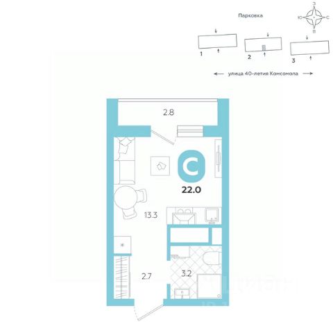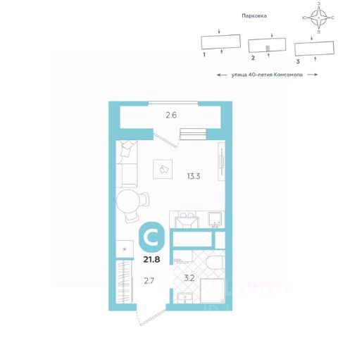 Эргономичная квартира-студия с лоджией и перспективой роста в цене — отличный выбор для тех, кто делает первые шаги к самостоятельной жизни. Общая площадь квартиры 21,9 кв.м., и ее умная планировка позволяет создать атмосферу, полностью отражающую ваши стиль и предпочтения. Квартира располагается в ЖК "Комсомольский" — жилом комплексе комфорт-класса. Здесь вы будете наслаждаться беззаботной жизнью, ведь ваш дом — воплощение практичности, безопасности и надежности. Для удобства предусмотрены колясочные на первых этажах домов, где можно оставить велосипеды и коляски в тепле. За безопасность отвечают система электронных ключей и видеонаблюдение. Еще здесь собственная котельная, поэтому в доме всегда будут горячая вода и оплата счетов только за фактически потребленное тепло. ПРЕИМУЩЕСТВА ЖК Красивые и функциональные парадные с мягкой и стильной зоной для отдыха, книгообменником, встроенными почтовыми ящиками и нишами для сумок Колясочные с доступом по ключу IP-домофоны Тихие лифты с плавным ходом О ПРОЕКТЕ ЖК "Комсомольский" строится в спокойном Кировском районе Екатеринбурга в границах улиц Сыромолотова — Рассветная — 40-лет Комсомола. Комплекс состоит из трех домов переменной этажности, которые выделяются динамичными линиями, выразительными фасадами и стильными лоджиями. ЛОКАЦИЯ Всё, что необходимо для повседневной жизни, находится недалеко от дома: школы, детские сады, продуктовые магазины, фитнес-клубы. Дорога до центра города на машине займет всего 10 минут — достаточно повернуть с улицы 40-летия Комсомола на улицу Владимира Высоцкого. Рядом с этим перекрестком начинается "Тропа здоровья" — большой терренкур вдоль "Каменных палаток". 10 мин до центра 3-4 минуты до школы No 82, гимназии No 176 4-5 минут до детских садов No 208, No 583, 266 20 мин до Свердловского областного медицинского колледжа и Центральной городской больницы No 7 В рамках стратегического развития района на первых этажах домов появятся коммерческие помещения, в которых откроются магазины и кафе. Следует учесть, что к 2030 году в Кировском районе планируется формирование регионального рекреационно-оздоровительного кластера, строительство ветки метро, расширение и модернизация старых промышленных зон социальной и бизнес-инфраструктуры, что приведет к созданию комфортной среды для жизни. Кроме того, в стратегию входит развитие Шарташского лесного парка как центра регионального и международного туризма. СПОСОБЫ ПОКУПКИ Ипотека: подберем выгодные условия в нескольких банках, чтобы вы могли выбрать лучшее Материнской капитал: можно использовать в качестве первоначального взноса Рассрочка: платите частями без % Сертификаты: позволяют оплатить часть стоимости квартиры О КОМПАНИИ "Паритет Девелопмент" — это современный и ответственный подход к реализации проектов в сфере жилищного строительства. Компания формирует среду, способную создать новое качество жизни для клиентов, поэтому каждый проект имеет свою философию