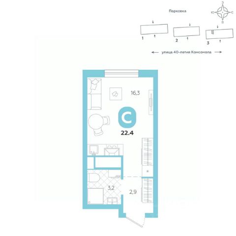 Квартиры-студии в жилом комплексе КомсомольскийЖК «Комсомольский»