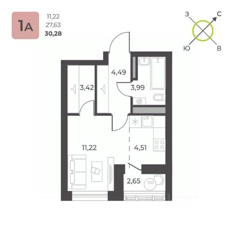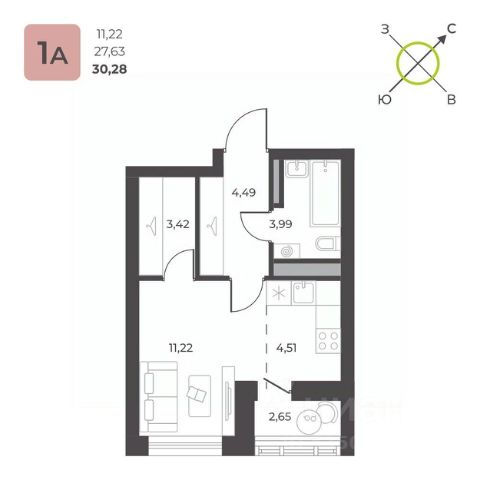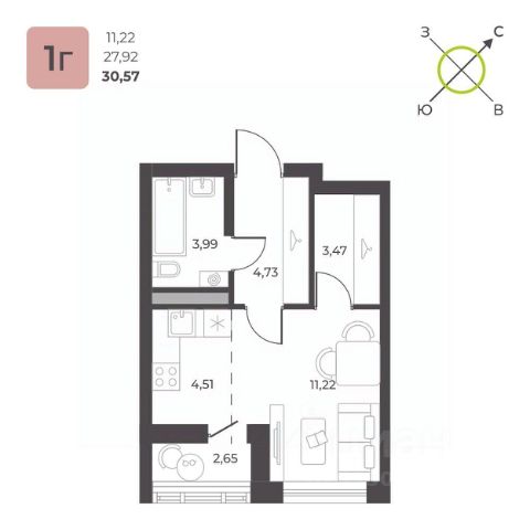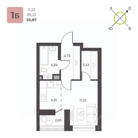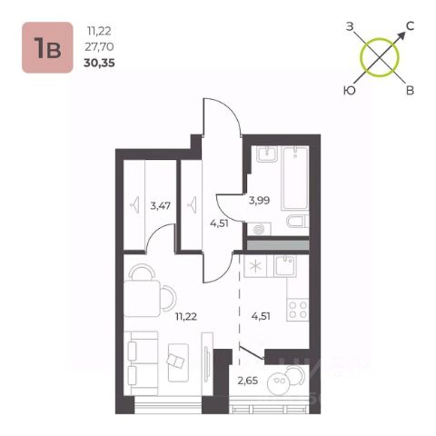 Жилая площадь 10.9 м2, кухня 5 м2, чистовая отделка. Раздельных санузлов - нет, балконов - нет, лоджий - нет.