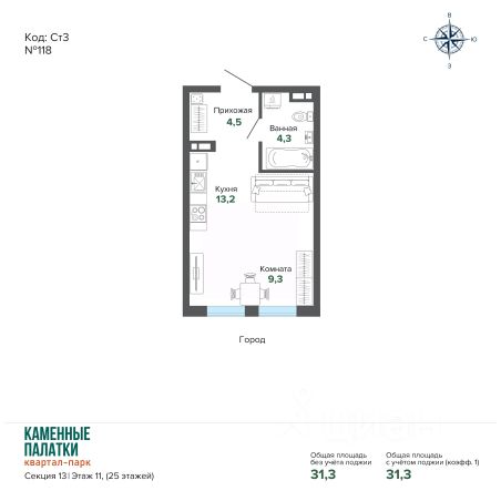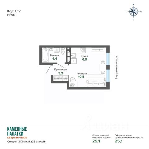 Продаётся квартира в Квартал-парк "Каменные палатки" от застройщика BAZA Development (покупка квартиры защищена банком). Квартира-студия, 25,06 м², 30, 4 очередь, 13 секция. Стоимость указана с учетом отделки white box. СВОДКА О ПРОЕКТЕ: Квартал-парк "Каменные палатки" — проект квартальной застройки комфорт-класса в виде отдельных зданий-секций разной этажности с собственной инфраструктурой, выходом в лесопарковую зону и озеру Шарташ. На данный момент идет застройка 4 очереди, где стартовали продажи 13 секции под управлением застройщика BAZA Development. Этажность: 25 Адрес: ул. Высоцкого 7/3 ОСОБЕННОСТИ: - Лесопарк "Каменные палатки" и озеро "Шарташ" в шаговой доступности. - Закрытая территория с собственным выходом в лес. Стилобат с объектами социальной и бытовой инфраструктуры, а также несколько детских площадок. - Собственный детский сад на 200 мест во дворе. - Видеонаблюдение, охрана. Вход только по смарт-ключам. - Комьюнити центр - бесплатное пространство для совместной работы, общения и отдыха прямо в доме. - Управляющая компания от BAZA. Мероприятия для жителей, собственное приложение для дистанционного решения вопросов, регулярные собрания и сбор обратной связи, офис прямо в доме для оперативного решения вопросов. - Трехступенчатая система дополнительной очистки воды. УДОБНЫЕ СПОСОБЫ ПОКУПКИ: Все прелести ДДУ: регистрация в Росреестре, защита 214ФЗ Фиксация цены. Цены на недвижимость растут, но не для вас! Помощь с продажей вторичной недвижимости Материнский капитал Трейд-ин: выкуп вашей квартиры и дальнейшее зачисление средств в счет стоимости новой Звоните, ответим на все вопросы!