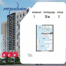 Продается студия, площадью 23.3 м2 в монолитно-кирпичной новостройке в 11 мин. транспортом от м.Чкаловская. Возможен вариант покупки с использованием ипотечных средств, есть рассрочка. Жилая площадь 10.4 м2, кухня 5 м2, чистовая отделка. Раздельных санузлов - нет, балконов - нет, лоджий - нет. Квартира располагается на 2 этаже 24-этажного дома в ЖК Меридиан. Застройщик - Специализированный застройщик ЛСР. Недвижимость-Урал, сдача дома - I квартал 2026 года, высота потолков 2.5 м. Парковка автомобилей - наземная. Инфраструктура: школа, детский сад, детские площадки, спортивные площадки, места для отдыха, супермаркет. "Меридиан" - уютный жилой комплекс от "Группы ЛСР", который расположен в активно развивающейся части Екатеринбурга - Академическом районе. За счет близости лесного массива и реки Патрушихи в локации сложилась благоприятная экологическая обстановка. В состав жилого квартала "Меридиан" входит шестнадцать панельных домов высотой от 8 до 25 этажей с разноцветными фасадами, а также здание образовательного центра. Новостройка расположена в юго-западной части Екатеринбурга, недалеко от ЕКАД, на границе микрорайонов Академический и Широкая речка, рядом с улицей Суходольская, по соседству с малоэтажным кварталом "Мичуринский". Позвоните и узнайте условия покупки прямо сейчас! Квартира-студия в ЖК Меридиан в Екатеринбурге.