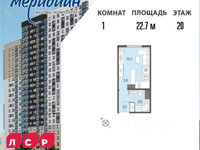 Продается студия, площадью 22.5 м2 в монолитно-кирпичной новостройке. Возможен вариант покупки с использованием ипотечных средств, есть рассрочка. Жилая площадь 10 м2, кухня 5 м2, чистовая отделка. Раздельных санузлов - нет, балконов - нет, лоджий - нет. Квартира располагается на 21 этаже 24-этажного дома в ЖК Меридиан. Застройщик - Специализированный застройщик ЛСР. Недвижимость-Урал, сдача дома - I квартал 2026 года, высота потолков 2.5 м. Парковка автомобилей - наземная. Инфраструктура: школа, детский сад, детские площадки, спортивные площадки, места для отдыха, супермаркет. "Меридиан" - уютный жилой комплекс от "Группы ЛСР", который расположен в активно развивающейся части Екатеринбурга - Академическом районе. За счет близости лесного массива и реки Патрушихи в локации сложилась благоприятная экологическая обстановка. В состав жилого квартала "Меридиан" входит шестнадцать панельных домов высотой от 8 до 25 этажей с разноцветными фасадами, а также здание образовательного центра. Новостройка расположена в юго-западной части Екатеринбурга, недалеко от ЕКАД, на границе микрорайонов Академический и Широкая речка, рядом с улицей Суходольская, по соседству с малоэтажным кварталом "Мичуринский". Позвоните и узнайте условия покупки прямо сейчас! Квартира-студия квартир-студий в Меридиан в Екатеринбурге.