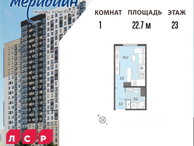 Продается студия, площадью 22.5 м2 в монолитно-кирпичной новостройке. Возможен вариант покупки с использованием ипотечных средств, есть рассрочка. Жилая площадь 10 м2, кухня 5 м2, чистовая отделка. Раздельных санузлов - нет, балконов - нет, лоджий - нет. Квартира располагается на 22 этаже 24-этажного дома в ЖК Меридиан. Застройщик - Специализированный застройщик ЛСР. Недвижимость-Урал, сдача дома - I квартал 2026 года, высота потолков 2.5 м. Парковка автомобилей - наземная. Инфраструктура: школа, детский сад, детские площадки, спортивные площадки, места для отдыха, супермаркет. "Меридиан" - уютный жилой комплекс от "Группы ЛСР", который расположен в активно развивающейся части Екатеринбурга - Академическом районе. За счет близости лесного массива и реки Патрушихи в локации сложилась благоприятная экологическая обстановка. В состав жилого квартала "Меридиан" входит шестнадцать панельных домов высотой от 8 до 25 этажей с разноцветными фасадами, а также здание образовательного центра. Новостройка расположена в юго-западной части Екатеринбурга, недалеко от ЕКАД, на границе микрорайонов Академический и Широкая речка, рядом с улицей Суходольская, по соседству с малоэтажным кварталом "Мичуринский". Позвоните и узнайте условия покупки прямо сейчас! Квартира-студия квартир-студий в Меридиан в Екатеринбурге.