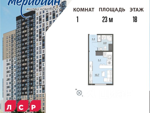Продается студия, площадью 22.7 м2. Возможен вариант покупки с использованием ипотечных средств, есть рассрочка. Жилая площадь 10.4 м2, кухня 5 м2, отделка под ключ. Раздельных санузлов - нет, балконов - нет, лоджий - нет. Квартира располагается на 3 этаже 25-этажного дома в ЖК Меридиан. Застройщик - Специализированный застройщик ЛСР. Недвижимость-Урал, сдача дома - II квартал 2028 года. Парковка автомобилей - наземная. Инфраструктура: школа, детский сад, детские площадки, спортивные площадки, места для отдыха, супермаркет. "Меридиан" - уютный жилой комплекс от "Группы ЛСР", который расположен в активно развивающейся части Екатеринбурга - Академическом районе. За счет близости лесного массива и реки Патрушихи в локации сложилась благоприятная экологическая обстановка. В состав жилого квартала "Меридиан" входит шестнадцать панельных домов высотой от 8 до 25 этажей с разноцветными фасадами, а также здание образовательного центра. Новостройка расположена в юго-западной части Екатеринбурга, недалеко от ЕКАД, на границе микрорайонов Академический и Широкая речка, рядом с улицей Суходольская, по соседству с малоэтажным кварталом "Мичуринский". Позвоните и узнайте условия покупки прямо сейчас! Квартира-студия квартир-студий в Меридиан в Екатеринбурге.