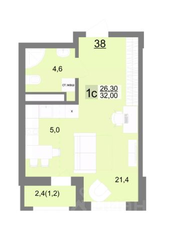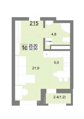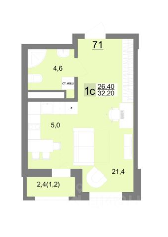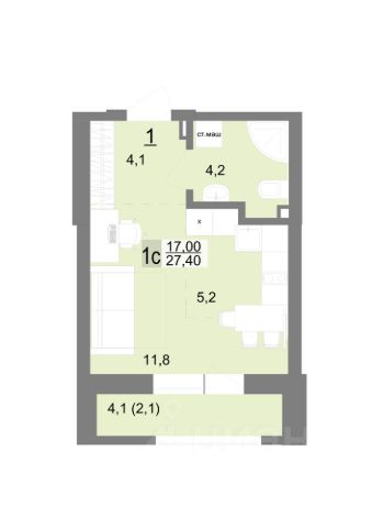 Продаётся студия в строящемся доме (Секция С2), срок сдачи: III-кв. 2026, общей площадью 27.4 кв.м., на 2 этаже. Многоэтажные жилые дома по ул. Металлургов от ГК "Астра". 1 очередь строительства