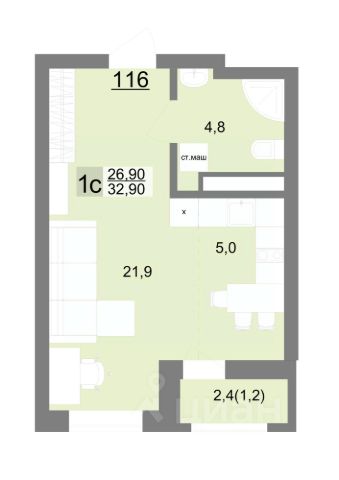 Продаётся студия в строящемся доме (Секция С3), срок сдачи: III-кв. 2026, общей площадью 32.9 кв.м., на 22 этаже. Многоэтажные жилые дома по ул. Металлургов от ГК "Астра". 1 очередь строительства