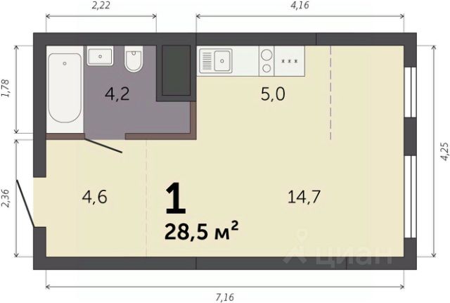 Продаётся студия в строящемся доме (Секция 1.1), срок сдачи: I-кв. 2028, общей площадью 28.5 кв.м., на 5 этаже. Новый жилой комплекс "Парк Культуры" от застройщика "СЗ Новый Дом" расположен по адресу: г. Екатеринбург, Базовый переулок.