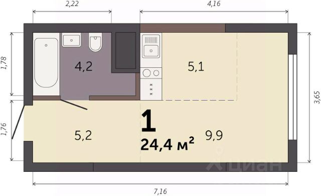 Продаётся студия в строящемся доме (Секция 1.1), срок сдачи: I-кв. 2028, общей площадью 24.2 кв.м., на 9 этаже. Новый жилой комплекс "Парк Культуры" от застройщика "СЗ Новый Дом" расположен по адресу: г. Екатеринбург, Базовый переулок.