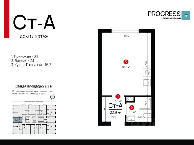 О компании: "Прогресс" — девелопер федерального уровня. Создаём современный стиль жизни с 2012 года. Совершенствуем культуру нашего общества. Предвосхищаем ваши ожидания. "Прогресс" - группа компаний полного цикла. Мы проектируем, строим и обслуживаем свои жилые комплексы. Входим в топ - 10 застройщиков по потребительским качествам ЖК по версии "Единый ресурс застройщиков". Мы - обладатель федеральных и европейских наград в сфере недвижимости: Urban Awards, European Property Awards, "Надёжный застройщик России" и др. Новый проект от создателей жилого квартала "Amundsen" "Progress Академический" - это место, где безопасно и уютно. Вы прочувствуете настоящую жизнь в режиме "здесь и сейчас". Удобная локация делает этот проект максимально привлекательным для тех, кто устал от суеты и ограниченных пространств. Безопасный благоустроенный двор, умные планировки и зонирование территории все это позволит почувствовать новый уровень комфорта. Соседство с лесным массивом, улучшает качество воздуха и создает уникальное экологически чистое окружение. Умные планировки. При проектировании дома наши архитекторы закладывают систему SMART- планировок: - Только разумное распределение полезной площади, которое отвечает реальным потребностям человека. Жители экономят деньги на протяжение всей жизни, ведь используется каждый уголок квартиры. - Несущие стены вынесены по периметру квартиры. Это дает возможность осуществлять перепланировку и реализовывать свои архитектурные идеи. - Все комнаты правильной формы, что упрощает расстановку мебели. Благоустроенные дворы. Наполнение двора детально продумано, с учетом потребностей каждого жителя. Детские площадки для разных возрастов, зоны отдыха, зеленые аллеи и пешеходные дорожки. В центре двора предусмотрен амфитеатр для общих встреч жителей и больших мероприятий. Собственная сервисная компания 24/7 поддерживает чистоту территории жилого квартала. Безопасность. Комплексная безопасность является одним из главных преимуществ. Проектом предусмотрено: закрытая придомовая территория без машин и круглосуточное видеонаблюдение без слепых зон, доступ через специальное мобильное приложение. Удобная локация. Инфраструктура обеспечит комфортную жизнь каждому. Это пространство с уникальной образовательной, спортивной и культурной инфраструктурой, необходимой для развития всесторонней личности. Парки и прогулочные зоны Продуктовые магазины "Пятерочка" и "Магнит" Тренажерные залы и фитнес-клубы 4 школы 9 детских садов Остановки общественного транспорта в 10 минутах ходьбы Технические преимущества: - система очистки водопроводной воды до питьевой - система телеметрии - установлены входные двери с тепло-шумоизоляцией - радиаторы отопления - наружные стены с встроенной шумоизоляцией - фасадная дренажная система позволяет избежать затопления фасадов и образования грязевых луж. Способы приобретения квартиры: • С помощью материнского капитала • В ипотеку Забронируйте квартиру по номеру телефона офиса продаж.