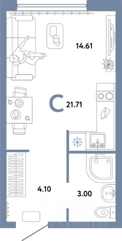 Продаётся уютная и полностью готовая к проживанию комната-студия площадью 18,5 м² в общежитии коридорного типа по адресу проспект Космонавтов, 52.
