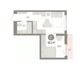 1-комн. студия с предчистовой отделкой в ЖК "Квартал Траектория" на 10 этаже. Общая площадь: 35.1 кв.м., площадь гостиной 25.4 кв.м., из которых 5 кв.м. выделено под кухонную зону. Все окна выходят на одну сторону. В квартире один балкон, один совмещенный санузел. Высота потолков 2.82 м. Дом монолитный, многоподъездный, переменной этажности, от 7 до 25 этажей. Квартира находится в 3-й секции высотой 16 этажей в корпусе 1-1. На этаже 7 квартир. В подъезде 1 пассажирский и 1 грузовой лифт. Начало строительства - 4 квартал 2025 года. Окончание строительства - 4 квартал 2027 года. Оформление сделки по договору долевого участия. Студия в квартале "Траектория". Особенности планировки: предчистовая отделка, балкон. квартиры в нашей базе: МНВ01-Ж3.10.3. Квартал "Траектория" строится в границах улиц Билимбаевской, Расточной, Монтажников и Маневровой Раньше здесь находился оборонный завод 5-ЦАРЗ, основанный в 1945 году. После войны он ремонтировал военную и грузовую технику — от "Виллисов" и "Студебекеров" до советских ЗИС-5 и ГАЗ-67. Сортировка — район с развитой инфраструктурой, обжитыми жилыми кварталами разных эпох и большим количеством парков. До центра Екатеринбурга — 20 минут на машине. Туда же можно отправиться на автобусе: ближайшая остановка общественного транспорта — в 4 минутах от "Траектории". Рядом с "Траекторией" расположены магазины, торговый центр, детские сады, школы, поликлиники и полезные сервисы, а также другой проект Брусники — квартал "Депо". Если хочется развлечений, можно отправиться в ТРЦ "Карнавал" и парк с аттракционами "Таганская слобода" — дорога туда займёт не более 10 минут на машине. Квартал "Траектория" — первый этап комплексного развития территории, которую раньше занимали производственные здания. На месте бывших цехов Брусника создаст дружелюбную среду и комфортное пешеходное пространство для всего района. Для озеленения квартала мы подобрали больше 60 видов растений: ольху, липу, клён, иву, грушу, вишню, сирень, барбарис, гортензию, смородину, ирис, декоративные травы. Они цветут в разное время года и постоянно меняют настроение двора. В "Траектории" мы предусмотрели несколько общественных пространств, открытых для всех горожан: встречающий сквер, лесопарк у храма и событийный сквер между домами. Когда захочется тишины и уединения, можно устроить прогулку во внутренних дворах: в них нет машин и посторонних, зато много зелени, света и мест для отдыха. Каждый двор в квартале "Траектория" — продолжение квартиры, только под открытым небом. Здесь можно прогуляться босиком по траве, устроить утреннюю йогу, почитать книгу в гамаке или отправить детей поиграть, не переживая за их безопасность. Мы закроем дворы от машин, чтобы создать безопасную среду для отдыха. Применим натуральные материалы в отделке малых архитектурных форм — дерево, камень, металл без лишней обработки. Внутри каждого двора — детские площадки, перголы с тенистыми зонами, мягкие газоны и места для общения с соседями. #z6MUAl