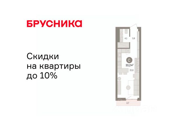 Просторная 1-комн. студия с предчистовой отделкой в ЖК "Квартал Траектория" на 8 этаже. Общая площадь: 33.2 кв.м., площадь гостиной 22.6 кв.м., из которых 5 кв.м. выделено под кухонную зону. Все окна выходят на одну сторону. В квартире один балкон, один совмещенный санузел. Высота потолков 2.82 м. Дом монолитный, многоподъездный, переменной этажности, от 7 до 25 этажей. Квартира находится в 1-й секции высотой 25 этажей в корпусе 1-1. На этаже 12 квартир. В подъезде 2 пассажирских и 1 грузовой лифт. Начало строительства - 4 квартал 2025 года. Окончание строительства - 4 квартал 2027 года. Оформление сделки по договору долевого участия. Студия в квартале "Траектория". Особенности планировки: балкон, предчистовая отделка. квартиры в нашей базе: МНВ01-Ж1.8.7. Квартал "Траектория" строится в границах улиц Билимбаевской, Расточной, Монтажников и Маневровой Раньше здесь находился оборонный завод 5-ЦАРЗ, основанный в 1945 году. После войны он ремонтировал военную и грузовую технику — от "Виллисов" и "Студебекеров" до советских ЗИС-5 и ГАЗ-67. Сортировка — район с развитой инфраструктурой, обжитыми жилыми кварталами разных эпох и большим количеством парков. До центра Екатеринбурга — 20 минут на машине. Туда же можно отправиться на автобусе: ближайшая остановка общественного транспорта — в 4 минутах от "Траектории". Рядом с "Траекторией" расположены магазины, торговый центр, детские сады, школы, поликлиники и полезные сервисы, а также другой проект Брусники — квартал "Депо". Если хочется развлечений, можно отправиться в ТРЦ "Карнавал" и парк с аттракционами "Таганская слобода" — дорога туда займёт не более 10 минут на машине. Квартал "Траектория" — первый этап комплексного развития территории, которую раньше занимали производственные здания. На месте бывших цехов Брусника создаст дружелюбную среду и комфортное пешеходное пространство для всего района. Для озеленения квартала мы подобрали больше 60 видов растений: ольху, липу, клён, иву, грушу, вишню, сирень, барбарис, гортензию, смородину, ирис, декоративные травы. Они цветут в разное время года и постоянно меняют настроение двора. В "Траектории" мы предусмотрели несколько общественных пространств, открытых для всех горожан: встречающий сквер, лесопарк у храма и событийный сквер между домами. Когда захочется тишины и уединения, можно устроить прогулку во внутренних дворах: в них нет машин и посторонних, зато много зелени, света и мест для отдыха. Каждый двор в квартале "Траектория" — продолжение квартиры, только под открытым небом. Здесь можно прогуляться босиком по траве, устроить утреннюю йогу, почитать книгу в гамаке или отправить детей поиграть, не переживая за их безопасность. Мы закроем дворы от машин, чтобы создать безопасную среду для отдыха. Применим натуральные материалы в отделке малых архитектурных форм — дерево, камень, металл без лишней обработки. Внутри каждого двора — детские площадки, перголы с тенистыми зонами, мягкие газоны и места для общения с соседями. #26gz4
