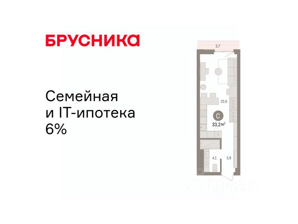 Просторная 1-комн. студия с предчистовой отделкой в ЖК "Квартал Траектория" на 8 этаже. Общая площадь: 33.2 кв.м., площадь гостиной 22.6 кв.м., из которых 5 кв.м. выделено под кухонную зону. Все окна выходят на одну сторону. В квартире один балкон, один совмещенный санузел. Высота потолков 2.82 м. Дом монолитный, многоподъездный, переменной этажности, от 7 до 25 этажей. Квартира находится в 1-й секции высотой 25 этажей в корпусе 1-1. На этаже 12 квартир. В подъезде 2 пассажирских и 1 грузовой лифт. Начало строительства - 4 квартал 2025 года. Окончание строительства - 4 квартал 2027 года. Оформление сделки по договору долевого участия. Студия в квартале "Траектория". Особенности планировки: балкон, предчистовая отделка. квартиры в нашей базе: МНВ01-Ж1.8.7. Квартал "Траектория" строится в границах улиц Билимбаевской, Расточной, Монтажников и Маневровой Раньше здесь находился оборонный завод 5-ЦАРЗ, основанный в 1945 году. После войны он ремонтировал военную и грузовую технику — от "Виллисов" и "Студебекеров" до советских ЗИС-5 и ГАЗ-67. Сортировка — район с развитой инфраструктурой, обжитыми жилыми кварталами разных эпох и большим количеством парков. До центра Екатеринбурга — 20 минут на машине. Туда же можно отправиться на автобусе: ближайшая остановка общественного транспорта — в 4 минутах от "Траектории". Рядом с "Траекторией" расположены магазины, торговый центр, детские сады, школы, поликлиники и полезные сервисы, а также другой проект Брусники — квартал "Депо". Если хочется развлечений, можно отправиться в ТРЦ "Карнавал" и парк с аттракционами "Таганская слобода" — дорога туда займёт не более 10 минут на машине. Квартал "Траектория" — первый этап комплексного развития территории, которую раньше занимали производственные здания. На месте бывших цехов Брусника создаст дружелюбную среду и комфортное пешеходное пространство для всего района. Для озеленения квартала мы подобрали больше 60 видов растений: ольху, липу, клён, иву, грушу, вишню, сирень, барбарис, гортензию, смородину, ирис, декоративные травы. Они цветут в разное время года и постоянно меняют настроение двора. В "Траектории" мы предусмотрели несколько общественных пространств, открытых для всех горожан: встречающий сквер, лесопарк у храма и событийный сквер между домами. Когда захочется тишины и уединения, можно устроить прогулку во внутренних дворах: в них нет машин и посторонних, зато много зелени, света и мест для отдыха. Каждый двор в квартале "Траектория" — продолжение квартиры, только под открытым небом. Здесь можно прогуляться босиком по траве, устроить утреннюю йогу, почитать книгу в гамаке или отправить детей поиграть, не переживая за их безопасность. Мы закроем дворы от машин, чтобы создать безопасную среду для отдыха. Применим натуральные материалы в отделке малых архитектурных форм — дерево, камень, металл без лишней обработки. Внутри каждого двора — детские площадки, перголы с тенистыми зонами, мягкие газоны и места для общения с соседями. #26gz4