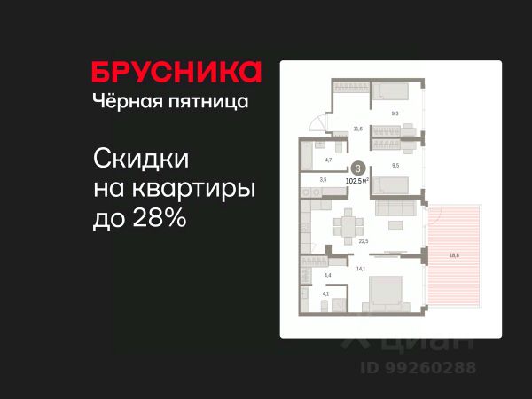Спешите забронировать по этой цене! Срок предложения ограничен! Стоимость квартиры указана со скидкой, ваша экономия составит 410,000 RUB. По всем вопросам обращайтесь в офис продаж, наши менеджеры вам все расскажут! Квартира с кухней-гостиной и тремя спальнями в Бруснике в Академическом. Особенности планировки: окна на две стороны, второй санузел, разнесённые спальни, предчистовая отделка, балкон, терраса на крыше. квартиры в нашей базе: АКД05-Ж6.8.4. Квартал "Брусника в Академическом" расположен в границах улиц Ландау — Новая. Сегодня Академический — молодой, стремительно развивающийся район, обеспеченный всей необходимой инфраструктурой. С центром его связывают две магистральные улицы — Вильгельма де Геннина и Амундсена. Последняя в перспективе соединится с ЕКАДом, что позволит жителям быстрее выезжать из города. Согласно утвержденному проекту планировки территории в пешеходной доступности от квартала Брусники появятся две школы, рассчитанные на 1700 мест, и шесть детских садов. Рядом со строящимися домами расположены две крупные зелёные зоны — Юго-Западный лесопарк и Преображенский парк. В школах раиона совместно с учеными УрО РАН будет реализован проект "Малая академия наук", предпогагающий регулярные экскурсии в отраслевые институты и лаборатории, участие в научных конференциях и мастер-классах. Также в Академическом уже построены, теннисная академия и дворец дзюдо, крупные ТРЦ "Краснолесье" и ТРЦ "Академический", гипермаркет "Лента", в планах — организация ИT-кластера и новых филиалов НИИ. Камерные дворы квартала закрыты от машин. По нашим стандартам 70% их территории покрывает зелень. Деревья, кустарники и травы подобраны таким образом, чтобы в каждый сезон двор оставался красивым и имел свой цвет. Каждый двор разделён на зоны. В одной расположены детские площадки, в другой — места для спорта и тихого отдыха взрослых. Особенность ландшафта дворов — дождевые сады, снижающие нагрузку на ливневую канализацию. Они впитывают сток с крыш и тротуаров, фильтруют его в специально подобранном субстрате и отправляют в пруд. #Zs0tId