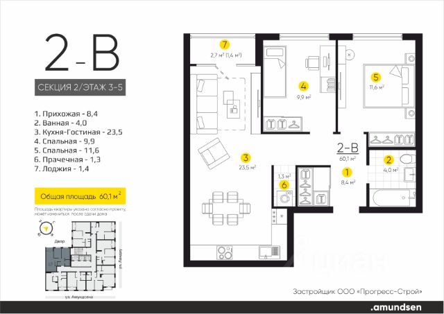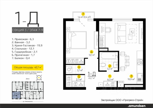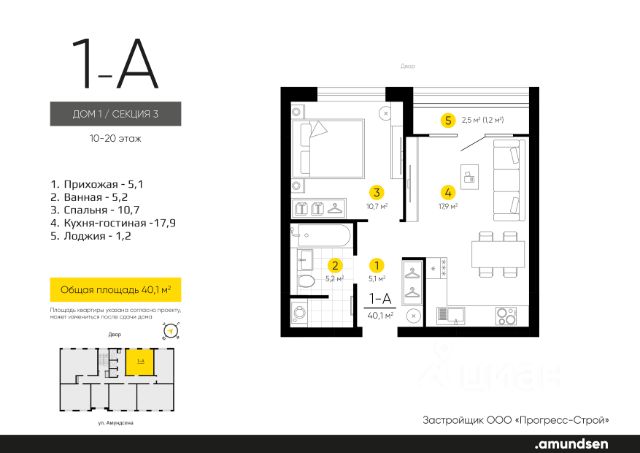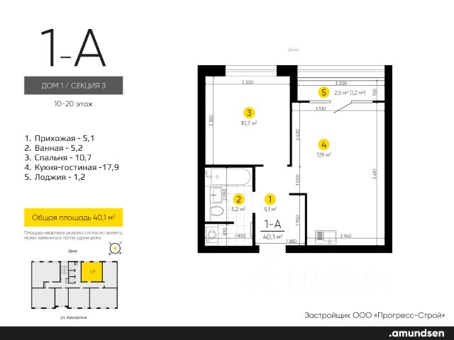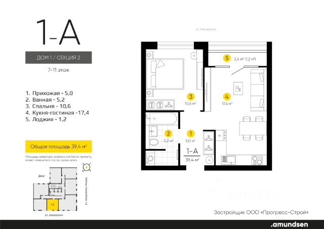 Жилой квартал "Amundsen" - для себя, для семьи, для жизни и развития. Авторская концепция проекта эффектно выделяется в 3 особенностях комплекса: фасады, двор и места общего пользования. AMUNDSEN ПРОЕКТ С ХАРАКТЕРОМ ВЕЛИКОГО ПЕРВООТКРЫВАТЕЛЯ. 4 СЕЗОНА: Двор-трансформер позволяет активно использовать все площадки круглый год. В холодное время года санки, коньки и снежные бои за главную башню. В теплое время источник наполняет двор водой и прохладой. Работают площадки для активных игр и спокойного отдыха. 6 ДЕТСКИХ ПЛОЩАДОК: Мы разделили площадки по возрастным группам для малышей и детей постарше. Качели, аттракционы, водные и активные игры созданы, чтобы познавать мир. 5 ПЛОЩАДОК ДЛЯ СПОКОЙНОГО ОТДЫХА: За счет игры с ландшафтом мы создали приватные зоны, украсили пространство разнотравьем, оживили двор источником. Шум воды, лежаки, беседки, парк места, где ты почувствуешь течение жизни. AMUNDSEN ИДЕАЛЬНОЕ МЕСТО ДЛЯ ЖИЗНИ И РАЗВИТИЯ. - Жилой квартал расположен в экологически чистом районе в окружении двух лесных массивов. - Новые современные школы и детские сады. Спортивный кластер для занятий. - Главный холл пространство для всех. Для самых маленьких игры, для взрослых кафе с ярким дизайном, тихий коворкинг, места для отдыха и светлый, просторный атриум. - Детские площадки "будущего" с оригинальным подходом к созданию игровой среды. - Безопасная территория. Круглосуточная охрана, видеонаблюдение 24/7, электронная система доступа, двор без машин. Застройщик ООО СЗ "Прогресс-Строй", проектная декларация на сайте наш.дом.рф