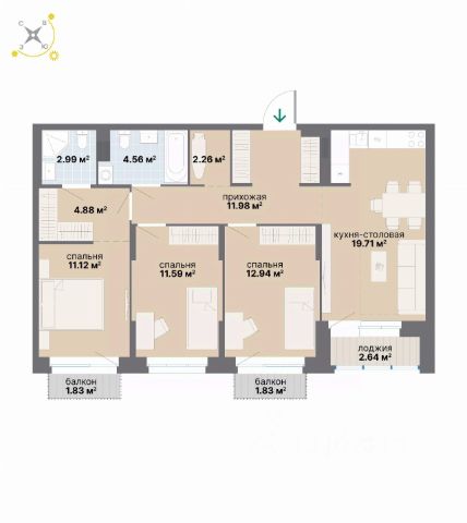 Квартира 56 в подъезде 1. Приобретайте жильё для сдачи в аренду или продажи в одном из самых зелёных и благоустроенных районов Екатеринбурга — в Краснолесье! Особенность новой очереди "Балтийского" в том, что квартиры здесь продаются только по инвестиционным договорам юр.лицам и ИП без использования кредитных программ. Новый "Балтийский" — это свобода в выборе планировки: помимо стандартных, есть варианты с террасами, антресолями, мастер-спальнями.
