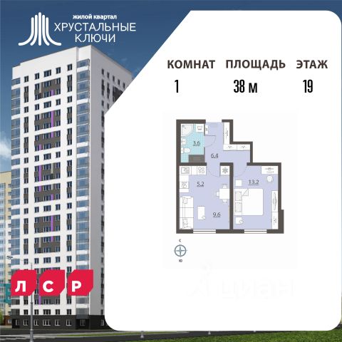 Продается 1-комн. квартира с европланировкой, площадью 37.9 м2 в монолитно-кирпичной новостройке в 12 мин. пешком от м.Ботаническая. Возможен вариант покупки с использованием ипотечных средств, есть рассрочка. Жилая площадь 20 м2, кухня 5.1 м2, чистовая отделка. Раздельных санузлов - нет, балконов - нет, лоджий - нет. Квартира располагается на 19 этаже 25-этажного дома в ЖК Хрустальные Ключи. Застройщик - ЛСР, сдача дома - IV квартал 2025 года, высота потолков 2.5 м. Парковка автомобилей - наземная. Инфраструктура: школа, детский сад, детские площадки, спортивные площадки, супермаркет. Жилой комплекс "Хрустальные ключи" — это место, куда хочется переехать. Здесь по утрам можно пить кофе с видом на сосновый лес. А по вечерам кататься на велосипедах по парку "Малый Исток" или заниматься спортом на территории физкультурно-оздоровительного комплекса "Факел", расположенного поблизости. В состав жилого комплекса "Хрустальные ключи" входит шесть панельных домов класса "комфорт" с разноцветными фасадами. Высота зданий варьируется от 9 до 25 этажей. "Хрустальные ключи" располагаются в юго-восточной части Екатеринбурга, в микрорайоне Компрессорный Октябрьского района, недалеко от Сибирского тракта и ЕКАД, примерно в 13 километрах от центра города. Рядом находятся сразу две платформы ("Компрессорный завод" и "Исток"), от которых можно за полчаса доехать до железнодорожного вокзала "Екатеринбург-Пасс.". До центра Екатеринбурга от комплекса также можно доехать на нескольких автобусах и маршрутных такси. Позвоните и узнайте условия покупки прямо сейчас!