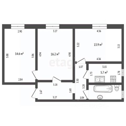 Продам 2-комнатную счастливую квартиру площадью 51,5 кв. м.