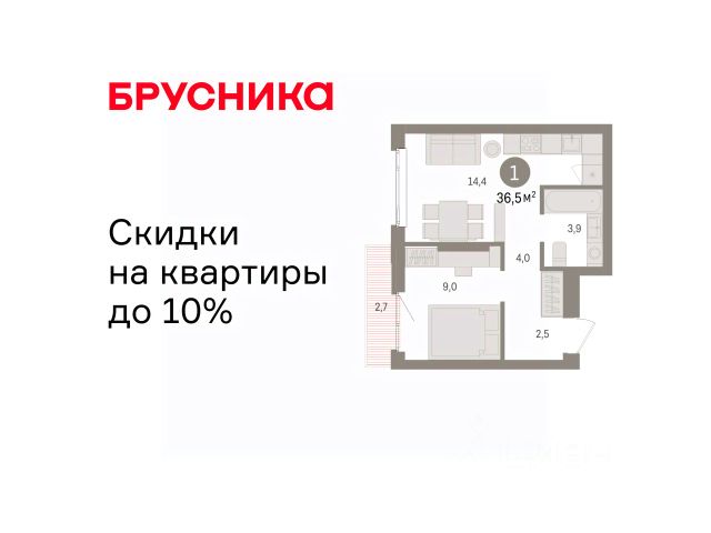Успейте забронировать, пока действует скидка, срок акции ограничен! Стоимость квартиры указана со скидкой, ваша экономия составит 590,000 руб. По всем вопросам обращайтесь в офис продаж, наши менеджеры вам все расскажут. Продается однокомнатная квартира с предчистовой отделкой в ЖК "Квартал Траектория" на 6 этаже. Общая площадь: 36.5 кв.м., жилая: 9 кв.м., площадь просторной кухни-столовой: 14.4 кв.м. Все окна выходят на одну сторону. В квартире один балкон, один совмещенный санузел. Высота потолков 2.82 м. Дом монолитный, многоподъездный, переменной этажности, от 7 до 25 этажей. Квартира находится в 1-й секции высотой 25 этажей в корпусе 1-1. На этаже 12 квартир. В подъезде 2 пассажирских и 1 грузовой лифт. Начало строительства - 4 квартал 2025 года. Окончание строительства - 4 квартал 2027 года. Оформление сделки по договору долевого участия. Квартира с кухней-гостиной и одной спальней в квартале "Траектория". Особенности планировки: балкон, вид во двор, предчистовая отделка. квартиры в нашей базе: МНВ01-Ж1.6.4. Квартал "Траектория" строится в границах улиц Билимбаевской, Расточной, Монтажников и Маневровой Раньше здесь находился оборонный завод 5-ЦАРЗ, основанный в 1945 году. После войны он ремонтировал военную и грузовую технику — от "Виллисов" и "Студебекеров" до советских ЗИС-5 и ГАЗ-67. Сортировка — район с развитой инфраструктурой, обжитыми жилыми кварталами разных эпох и большим количеством парков. До центра Екатеринбурга — 20 минут на машине. Туда же можно отправиться на автобусе: ближайшая остановка общественного транспорта — в 4 минутах от "Траектории". Рядом с "Траекторией" расположены магазины, торговый центр, детские сады, школы, поликлиники и полезные сервисы, а также другой проект Брусники — квартал "Депо". Если хочется развлечений, можно отправиться в ТРЦ "Карнавал" и парк с аттракционами "Таганская слобода" — дорога туда займёт не более 10 минут на машине. Квартал "Траектория" — первый этап комплексного развития территории, которую раньше занимали производственные здания. На месте бывших цехов Брусника создаст дружелюбную среду и комфортное пешеходное пространство для всего района. Для озеленения квартала мы подобрали больше 60 видов растений: ольху, липу, клён, иву, грушу, вишню, сирень, барбарис, гортензию, смородину, ирис, декоративные травы. Они цветут в разное время года и постоянно меняют настроение двора. В "Траектории" мы предусмотрели несколько общественных пространств, открытых для всех горожан: встречающий сквер, лесопарк у храма и событийный сквер между домами. Когда захочется тишины и уединения, можно устроить прогулку во внутренних дворах: в них нет машин и посторонних, зато много зелени, света и мест для отдыха. Каждый двор в квартале "Траектория" — продолжение квартиры, только под открытым небом. Здесь можно прогуляться босиком по траве, устроить утреннюю йогу, почитать книгу в гамаке или отправить детей поиграть, не переживая за их безопасность. Мы закроем дворы от машин, чтобы созд