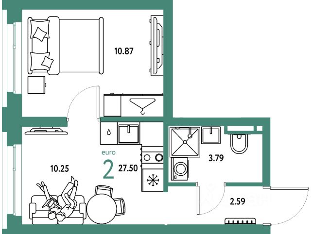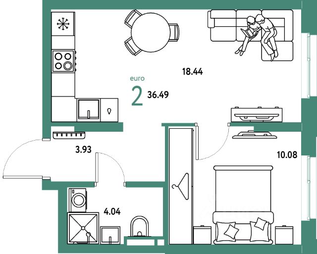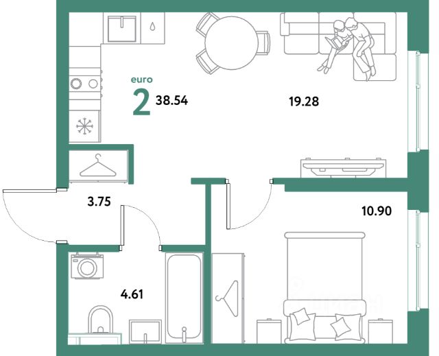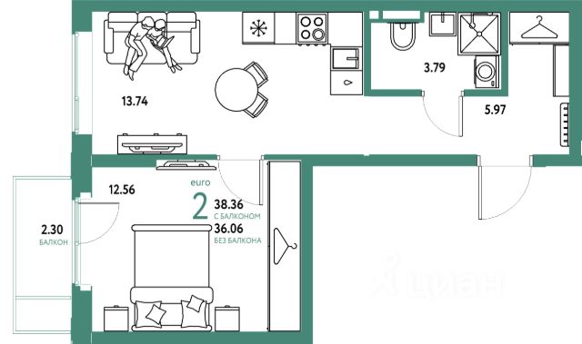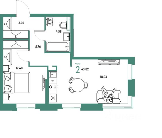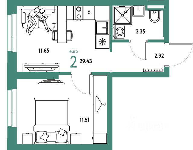 Продаётся уютная евродвушка в ЖК Woods - дом в парке!!!