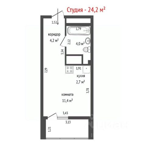 - раздельный c/узел 3,4 + 2 кв.м. (можно объединить);