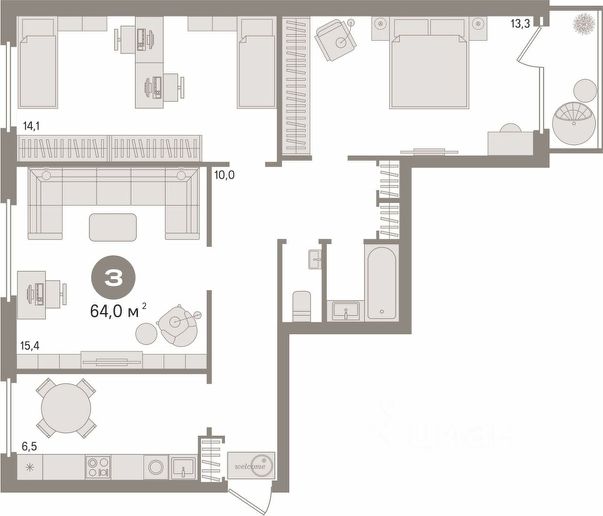 В квартире остаётся мебель по договоренности.