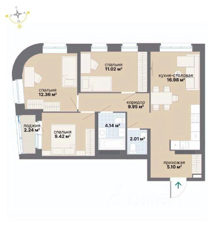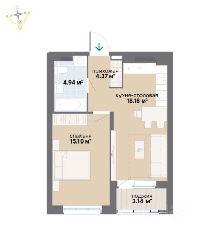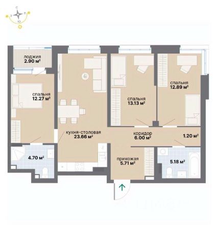 Есть застекленная большая лоджия, где можно оборудовать прекрасную зону отдыха. Просторная прихожая 8 м2.