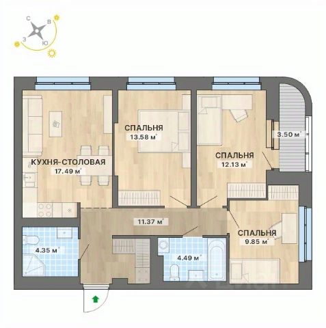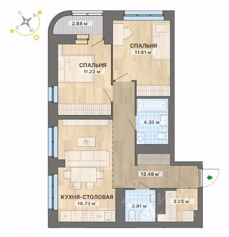 Квартира 6 в подъезде 1. Современные кварталы европейского типа в 5 минутах пешком от метро "Уралмаш". Садик в глубине квартала. Магазины и офисы у дома. Здание с кафе и благоустроенная площадь рядом с ним. Паркинг и уютный закрытый двор.