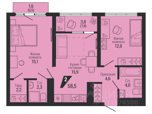 122 078 ₽/м²