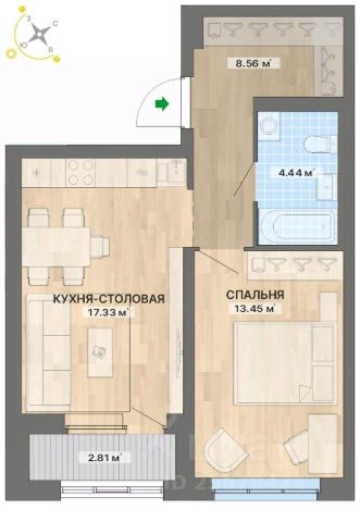 Квартира с кухней-гостиной и двумя спальнями в квартале "Депо". Особенности планировки: второй санузел, гардеробная, вид во двор, разнесённые спальни, предчистовая отделка, мастер-спальня, балкон.