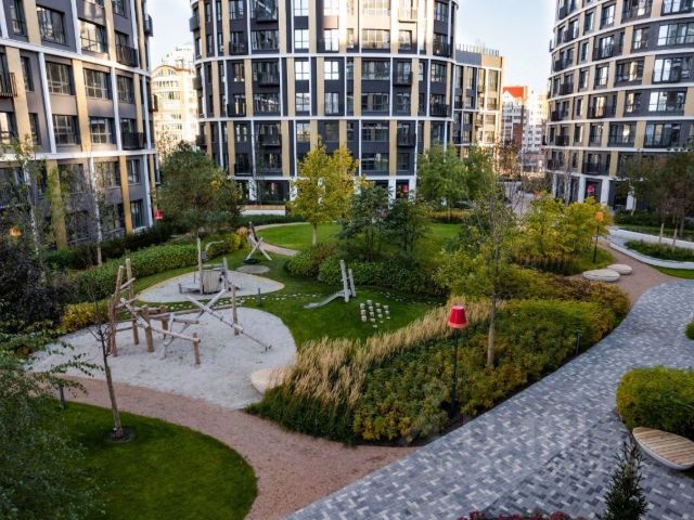 - Уникальный ландшафтный двор-парк, где каждый найдет место для отдыха и развлечений: прогулочные аллеи, окруженные зелеными насаждениями, спортивные и детские площадки, зарядные станции для гаджетов и Wi-Fi.