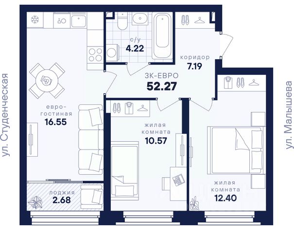 id:8771. Продам благоустроенную, двух комнатную квартиру, в лучшем жилом комплексе г. Ревда. Уютная и светлая квартира, 53,2 м.кв., расположена на 10/10 этаже. Квартира имеет две отдельных комнаты, вместительную кухню-гостиную, раздельный сан узел и большую 6 метровую лоджию. Ремонт сделан в 2021 году, во всех комнатах натяжные потолки, на полу ламинат. В сан.узлах на полу кафель. Счетчики установлены на воду (кухня и сан.узел отдельно), э/э, отопление (регулируется индивидуально в каждой комнате), что значительно экономит оплату по коммунальным платежам. При продаже остается вся мебель: Качественный, кухонный гарнитур, с варочной поверхностью, духовой шкаф Bosch. Стенка под телевизор. Столы, стулья. Диваны, шкафы, двуспальная кровать, тумбочки и т.д... Заезжай и живи! Дом оснащен видеокамерами по всему периметру, установлен "умный домофон", лифт грузовой. Чистый, зеленый двор, детские и спортивные площадки, зоны отдыха с видом на пруд и лес. Бесплатная и платная парковки. В шаговой доступности вся инфраструктура: новый детский сад, школа, автовокзал, различные магазины и торговые центры, Озон, Вайлберис. Всё что нужно для комфортной жизни. Документы готовы к продаже. Продажа возможна в ипотеку и с использованием жилищных сертификатов.