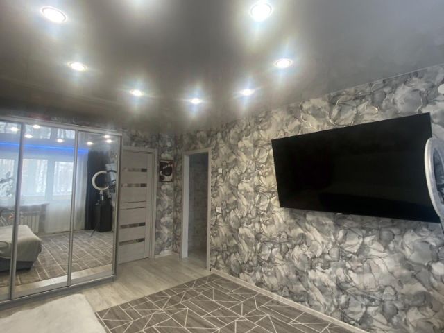 Мебель: встроенная гардеробная, кровать, диван, прихожая, кух. гарнитур с фильтром для питьевой воды, прикроватный столик, стулья, полка под телевизионной зоной, турник.