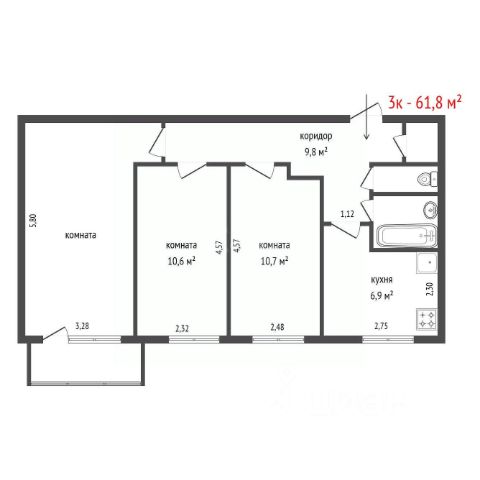 • ✅ Минимальная площадь: 34,3 м²