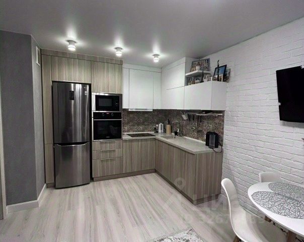 Кухня оборудована новым кухонным гарнитуром со встроенной техникой: варочная поверхность, духовой шкаф, посудомоечная машина на 60 см, установлен фильтр для питьевой воды.