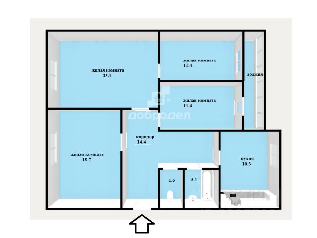 Очень удобное планировочное решение, три изолированные комнаты - 18,7 кв.м, 11,4 кв.м и 11,4 кв.м. и одна смежная - 23,1 кв.м - идеально для большой семьи или возможности зонирования. Светлая, уютная кухня площадью 10,3 кв.м. Сан.узел раздельный. Имеется большая лоджия, где можно наслаждаться видами голубого неба и красотой зелёного леса - это не только шикарный вид, но и свежий воздух, ощущение близости с природой, источником вдохновения и сил. Здесь настоящий простор для гармоничной семейной жизни.