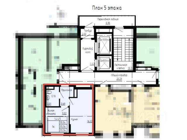 - общая площадь 39 м2, кухня 11 м2, комната - 14,7 м2, балкон