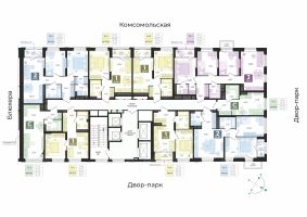 Дом 5 Класс дома: комфорт. Отделка: чистовая (под ключ) включена в стоимость. Скидка при выборе предчистовой отделки. Размер скидки уточняйте в отделе продаж. Вид из окон: на дендропарк и во двор-парк. Б.26 дом на высоте современный жилой комплекс в районе Втузгородок (пересечении улиц Блюхера и Мира). До центра города 20 минут ходьбы. В шаговой доступности находятся: ВУЗы (Уральский федеральный университет, Юридическая академия) Дендрологический парк. школы (Гимназии 35, 47, 108, Лицей 130) детские сады ( 421, 423, 332, 352) остановки общественного транспорта (ул. Мира, ул. Блюхера, ТК Современник). торговые центры (Апельсин, Современник, Галерея 11, Blissco молл) Современная архитектура. Долговечные фасады из навесных панелей и штукатурки, увеличенные окна и французские балконы формируют уникальный узнаваемый образ. Ночная подсветка выделяет дом среди застройки района и подчеркивает выразительность его силуэта. Двор без машин. Игровые площадки для детей разных возрастов, места отдыха и занятий спортом для взрослых не соседствуют с парковкой. Динопарк. Игровые зоны созданы в стиле таинственного мира динозавров. Парк во дворе. Многоуровневое озеленение c прогулочными дорожками, беседками и качелями. 3 уровня безопасности. Контроль доступа по карте жителя, эффективная система видеонаблюдения, консьерж-сервис. Дизайнерские холлы. Парадный холл с остеклением в пол, зонами ожидания, гостевым санузлом и санузлом для мытья лап животным, а также колес велосипедов и колясок. Сервисная компания от застройщика. Обслуживанием дома будет заниматься профессиональная команда. Строительные и технические преимущества. Индивидуальный тепловой пункт: снижает затраты на отопление. Система очистки улучшит качество воды в доме. Пятикамерные окна задержат шумы и холод. Клапан вентиляции позволит проветрить комнату, не устраивая сквозняк. Горизонтальная разводка отопления: трубы спрятаны в полу. Счетчики с телеметрией. Отдельный счетчик на отопление у каждой квартиры. Отведение конденсата для кондиционеров. Высокий уровень шумоизоляции у стены квартир. Бесшумные, скоростные лифты.