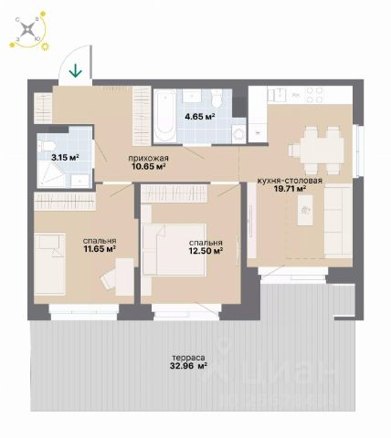 Просторная кухня-гостиная, вместительная спальня со своим балконом и огромных размеров ванная комната, в которой хочется пропадать часами