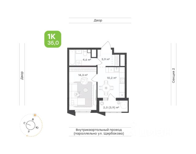 Идеальный выбор для тех, кто ценит личную свободу и функциональность Просторная кухня-гостиная станет местом для создания вдохновляющих кулинарных шедевров и тёплых встреч с друзьями Изолированная комната обеспечивает личное пространство для отдыха и восстановления. Здесь достаточно места для большой кровати и системы хранения Современный санузел позволяет разместить всё необходимое для домашних нужд и расслабляющей вечерней ванны Функциональная прихожая с зоной под гардеробную избавит от беспорядка, обеспечивая комфорт с первых секунд