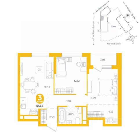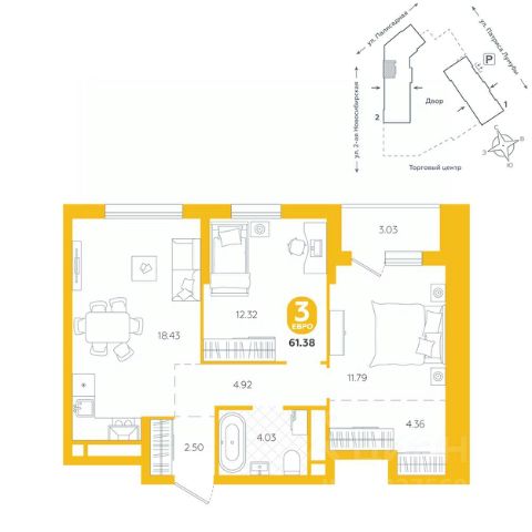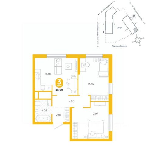 Квартира находится в ЖК "Бодровский" от федерального застройщика "Паритет Девелопмент". Это жилой комплекс комфорт-класса с современной архитектурой, расположенный в Екатеринбурге в районе улиц Патриса Лумумбы и 2-й Новосибирской. Добраться от него до центра города можно всего за 25 минут, дорога до ЕКАДа займет 12 минут. В окружении жилого комплекса есть шесть детских садов, пять школ, три больших парка, пять спорткомплексов, в том числе курортный комплекс Уктус. Квартал состоит из двух секций переменной этажности (от 14 до 24 этажей) и подземного паркинга с кладовыми, к которым можно будет спуститься на лифте. На первых этажах предусмотрены коммерческие помещения: жители смогут сделать маникюр, воспользоваться услугами ателье, выпить кофе с круассаном, не покидая своего района. Ввод в эксплуатацию в III кв. 2027 года. Территория комплекса огорожена от машин и посторонних людей. Озеленение с многолетними растениями и деревьями создает ощущение близости к природе. Двор наполнен всем необходимым: песочницы и качели для самых маленьких, интерактивная башня для детей постарше, воркаут-зона и места для отдыха. На всей территории реализована безбарьерная среда. В парадных выполнен авторский ремонт. За счет панорамного остекления и 4-метровых потолков там всегда много естественного света. Предусмотрены колясочные с местами для хранения спортинвентаря и креплениями для велосипедов. В проекте представлены студии, классические одно- и двухкомнатные варианты, а также двух-, трех- и четырехкомнатные квартиры в евроформате площадью от 25,32 до 76,65. Все планировки — функциональные и подходящие новоселам как с детьми, так и без них. Есть варианты с лоджиями, где можно организовать дополнительное пространство для отдыха, спорта или работы, а еще квартиры с мастер-спальней, гардеробной, двумя санузлами. В каждой предусмотрена вытяжная вентиляция с естественным побуждением, счетчики с телеметрией и корзины для кондиционеров. Характеристики квартиры: этаж - 9 количество комнат - 2 номер помещения - 238 площадь квартиры - 60,46 кв.м Чтобы сэкономить время и деньги, можно приобрести квартиру сразу с ремонтом от застройщика. На выбор 3 конфигурации: базовый, с кухонным гарнитуром, с кухонным гарнитуром и другой мебелью - в светлом и темном оттенках. Ремонт можно включить в ипотеку.