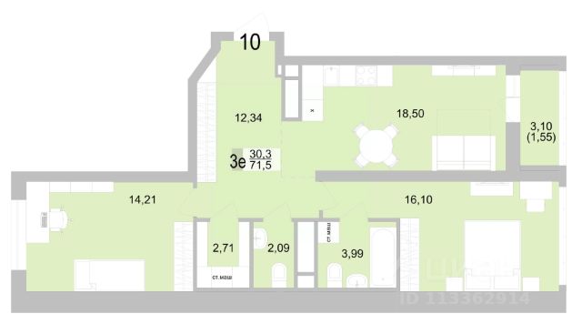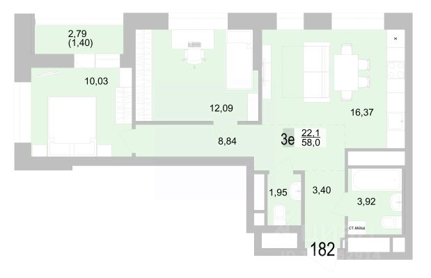 158 134 ₽/м²